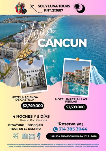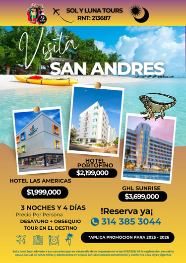 En Sol y Luna Tours hacemos posible que explores el mundo sin límites. 🌎 Manejamos todos los destinos nacionales e internacionales que puedas imaginar, desde las maravillas de Colombia hasta los rincones más exóticos del planeta. ✈️