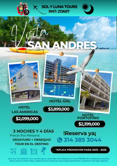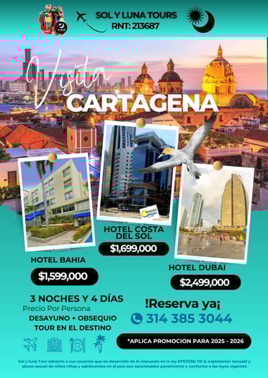 En Sol y Luna Tours hacemos posible que explores el mundo sin límites. 🌎 Manejamos todos los destinos nacionales e internacionales que puedas imaginar, desde las maravillas de Colombia hasta los rincones más exóticos del planeta. ✈️